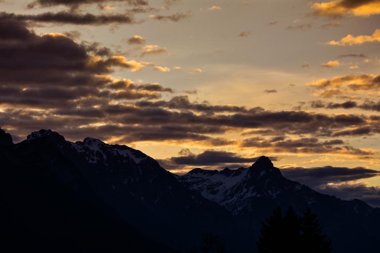 Keywords: landscape mountains mountain peaks sky clouds sunlight sunrise morning morgenstimmung nature