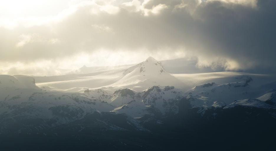 Keywords: landscape mountains peaks summit cliffs snow clouds sky