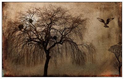 Keywords: landscape mystical tree raptor bird mood lighting fantasy composing