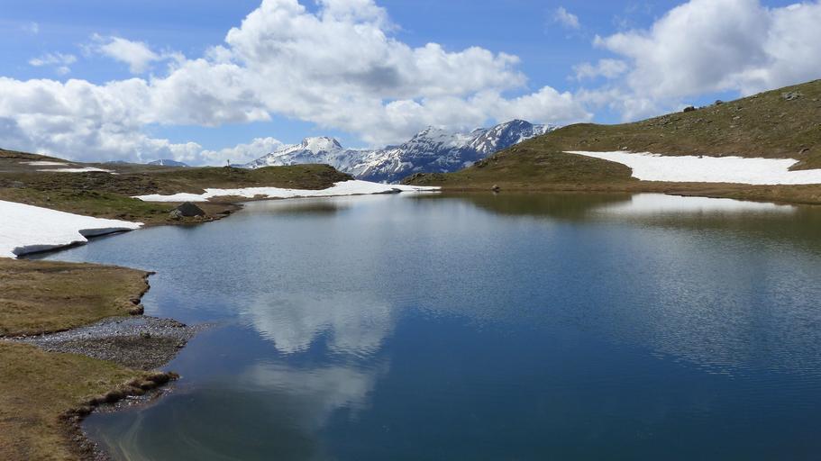 Keywords: landscape nature mountain lake alps snow spring water calm