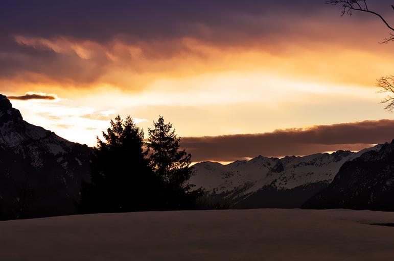 Keywords: landscape nature winter wintry sunrise sunlight lighting sky mountains snow mountain peaks outlook morning silent rest painting digital painting