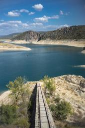 Keywords: landscape river nature clouds rail the end mountain water field rock blue reservoir