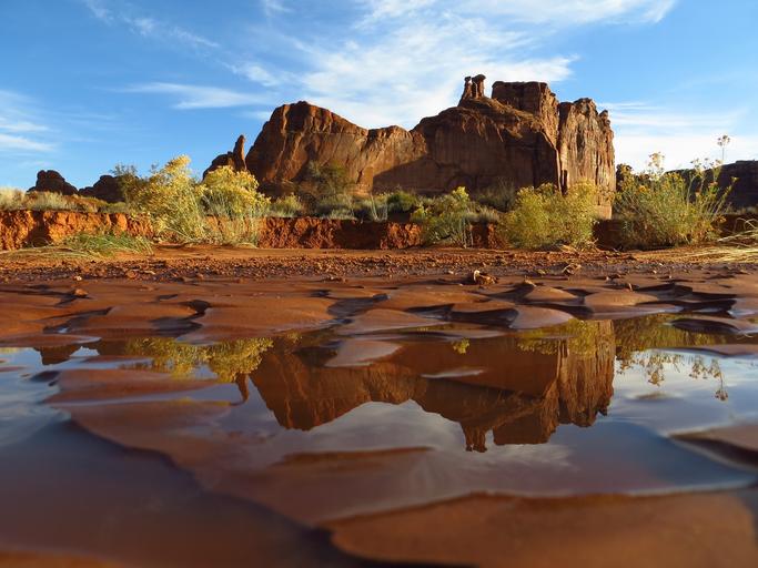 Keywords: landscape rock formations arches national park wilderness moab utah sandstone desert america travel scenic outdoors geology usa water reflections stone