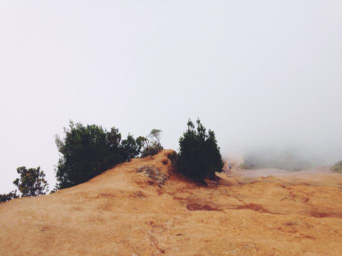 Keywords: landscape stone rock sand vegetation shrubs fog mist