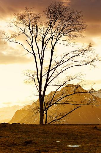 Keywords: landscape tree mountains mountain peaks outlook nature sunrise silent morning back light