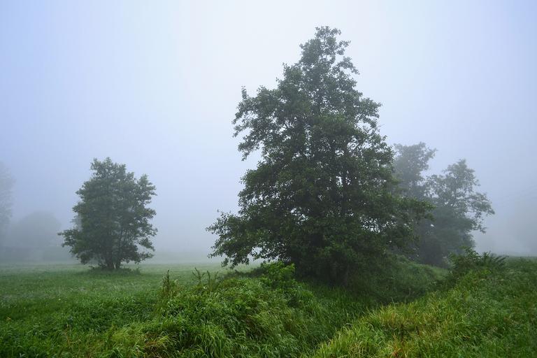 Keywords: landscape view meadow blue tree clouds nature polyana green sky the fog grass