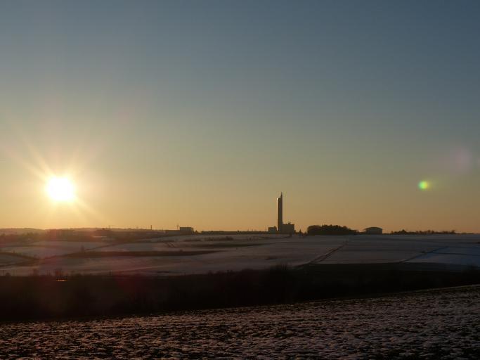 Keywords: landscape wintry arable field cultivation agriculture winter snow cold grain silo sunset schapfe mill flour mill jungingen ulm swabian alb highest grain silo world record record german architecture award architecture building silo memory tower