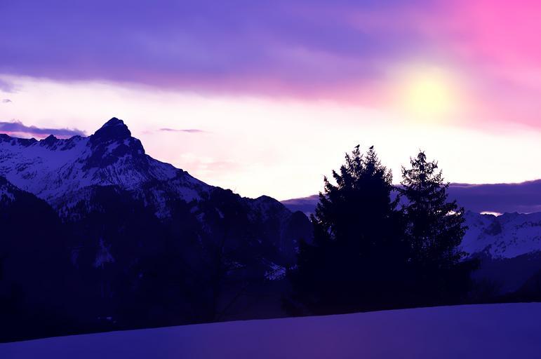 Keywords: landscape wintry snow winter mountains mountain peaks mountain summit sun sunrise outlook rest morning