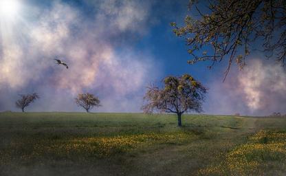 Keywords: landscapes clouds nature skies mood romantic sun reported trees