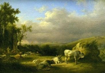 | Keywords: Landschap met vee in de Campagna.jpg Tájkép marhákkal Campagnában nl Landschap met vee in de Campagna Oil on canvas Haarlem Teylers Museum own ; Photo by Szilas in the Teylers Museum 1810 creator Abraham Teerlink PD-old-100 Other versions Teylers Eerste Schilderijenzaal Abraham Teerlink Paintings of bulls Cattle herders in art |