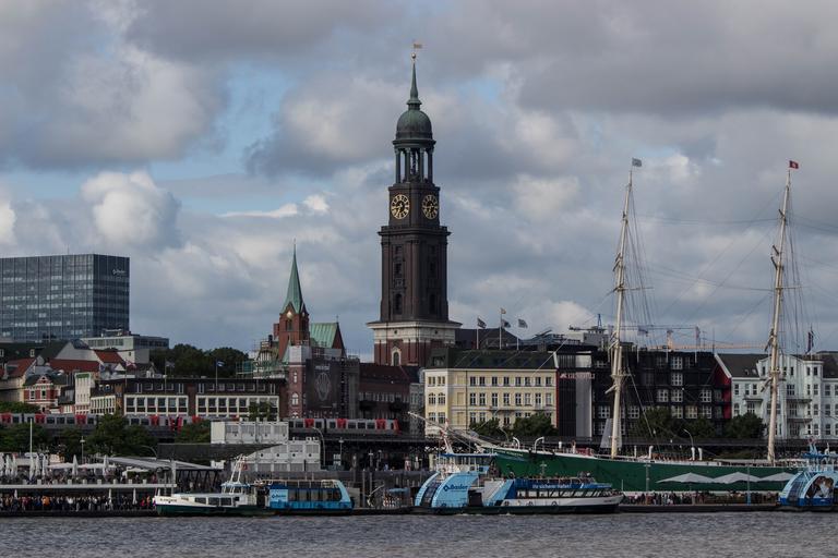 Keywords: landungsbrücken hamburg michel elbe water port germany ferry ship northern germany boot landmark hanseatic city port city investors