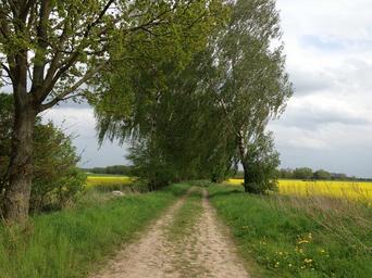 Keywords: lane trees birch oilseed rape green