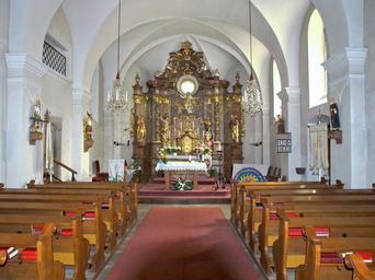 Keywords: langschlag hl stephan church interior aisle altar religious christianity building worship catholic holy spiritual benches empty decor indoors belief