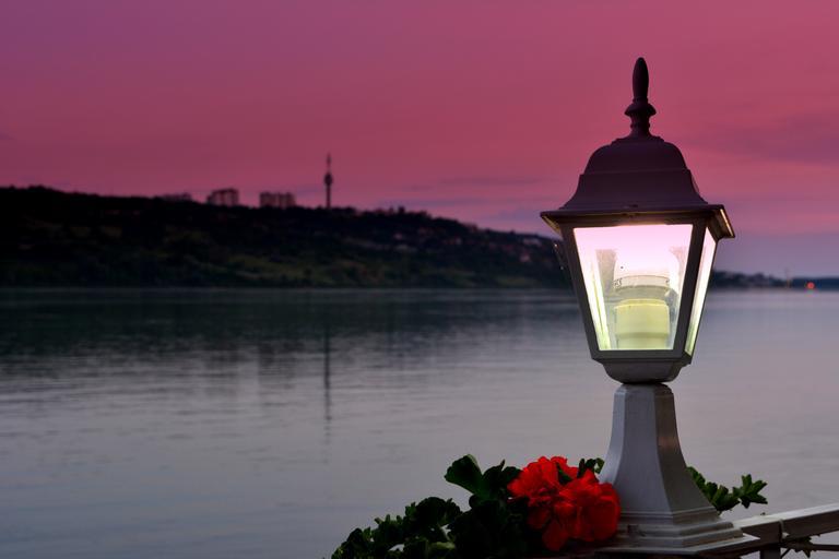 Keywords: lantern water reflection in the evening shadows sunset landscape