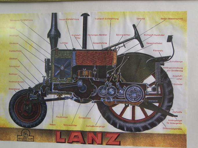 | Keywords: Lanz bulldog schnitt.jpg en Cross section of Lanz-Bulldog tractor Photograph of a commercial poster which was taken at Museum Sinsheim Germany Museum agrees with taking and online publishing of photos for noncommercial use http //sinsheim technik-museum de/en/en/frequently-asked-questions cs Řez traktorem Lanz-Bulldog Fotografie pořízena za stojanu v muzeu Sinsheim Německo de Schnitt durch Lanz-Bulldog Traktor Fotografie wurde im Museum Sinsheim abgenommen own Selit Lanz tractors | ||||