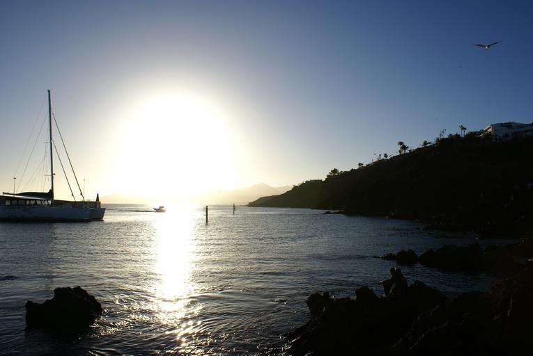 Keywords: lanzarote boat cliff sea solar landscapes coastal backlight sky evening sunset dusk