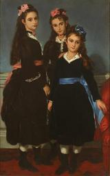 | Keywords: Las hijas del duque de Montpensier (Museo del Romanticismo de Madrid).jpg La obra representa a tres de las hijas de Antonio de Orleans 1824-1890 duque de Montpensier e hijo del rey Luis Felipe de Francia Y las tres niñas retratadas son las hijas mayores del duque que tuvo diez hijos con su esposa la infanta Luisa Fernanda de Borbón María Isabel de Orleans 1848-1919 María Amalia Luisa de Orleans 1851-1870 y María Cristina de Orleans 1852-1879 circa 1855 1863 oil on canvas Size cm 101 160 Institution Museo del Romanticismo http //ceres mcu es/pages/Main accession number CE7171 http //ceres mcu es/pages/Main PD-old-100 Princess Marie Isabelle of Orléans María Cristina de Orleans Antoine d'Orléans 1824-1890 Paintings by Alfred Dehodencq Portrait paintings of children in the Museo del Romanticismo de Madrid |