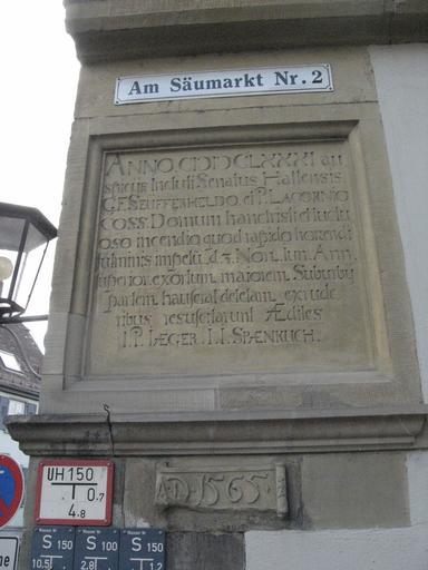 | Keywords: Lateinische Erinnerungsttafel Am Säumarkt Nr. 2 in Schwäbisch Hall an den Stadtbrand von1680.jpg Schwäbisch Hall am Gebäude Am Säumarkt Nr 2 an den Stadtbrand von 1680 <br /> own 2011-05-04 Brtlwr2 <span class signature-talk >talk</span> 49 06 50 7 N 09 44 11 44 E region DE_heading W Inscriptions in Baden-Württemberg Schwäbisch Hall Am Säumarkt 2 Erinnerungstafel an den Stadtbrand von 1681 History of Schwäbisch Hall Cc-zero | ||||