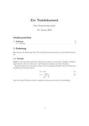 | Keywords: LaTeX Output DE.svg Aussehen einer mit LaTeX erstellten pdf-Datei nach dem Kompilieren des Quelltextes deutschsprachige Version self created using pdfTeX-1 40 10 from Source see below 2010-08-06 svg from Lumu <span class signature-talk >talk</span> LaTeX Output Einstein DE svg File LaTeX Output svg english LaTeX source <source lang latex > \documentclass scrartcl \usepackagelatin1 inputenc \usepackageT1 fontenc \usepackagengerman babel \usepackage amsmath \title Ein Testdokument \author Otto Normalverbraucher \date 05 Januar 2004 \begin document \maketitle \tableofcontents \section Einleitung Hier kommt die Einleitung Ihre à berschrift kommt automatisch in das Inhaltsverzeichnis \subsection Formeln \LaTeX ist auch ohne Formeln sehr nützlich und einfach zu verwenden Grafiken Tabellen Querverweise aller Art Literatur- und Stichwortverzeichnis sind kein Problem Formeln sind etwas schwieriger dennoch hier ein einfaches Beispiel Zwei von Einsteins berühmtesten Formeln lauten \begin align E mc 2 \\ m \frac m_0 \sqrt 1-\frac v 2 c 2 \end align Aber wer keine Formeln schreibt braucht sich damit auch nicht zu beschäftigen \end document </source> Images with LaTeX source code |