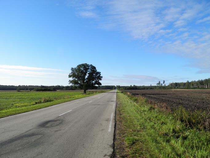 Keywords: latvia landscape road sky clouds tree fields rural country countryside scenic vista spring summer