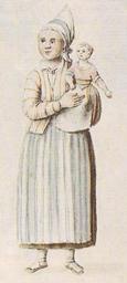 | Keywords: Latvian nanny by Brotze.jpg A Latvian nanny the author notes that almost all of them carry children on their left hand which promotes left handedness Scaned from a book 2010-07-14 Johann Christoph Brotze 100px PD-old Johann Christoph Brotze History of Riga Nannies in art |