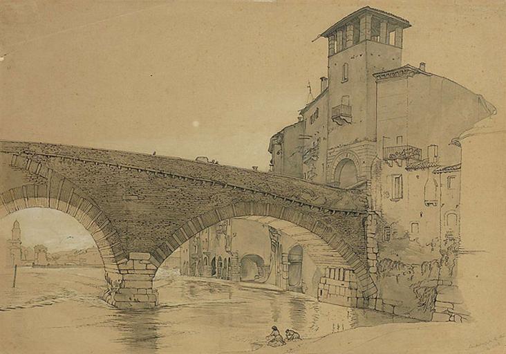 | Keywords: Laufenburg Brücke 1840.jpg laut Auktionshaus Laufenburg Die steinerne Brücke über den Rhein flußabwärts gesehen um 1840 Federzeichnung über Bleistift 34 5 x 49 5 cm Ink and pencil 34 5 x 49 5 cm http //www zeller de/de/katalog/auktion-88-april-06/auktionsartikel/laufenburg/ Auktionshaus Michael Zeller Auktion 88 April 2006 Lot 1584 E M Ward ~ 1840 PD-Art-100 Stone arch bridges in art Images from Auktionshaus Zeller | ||||