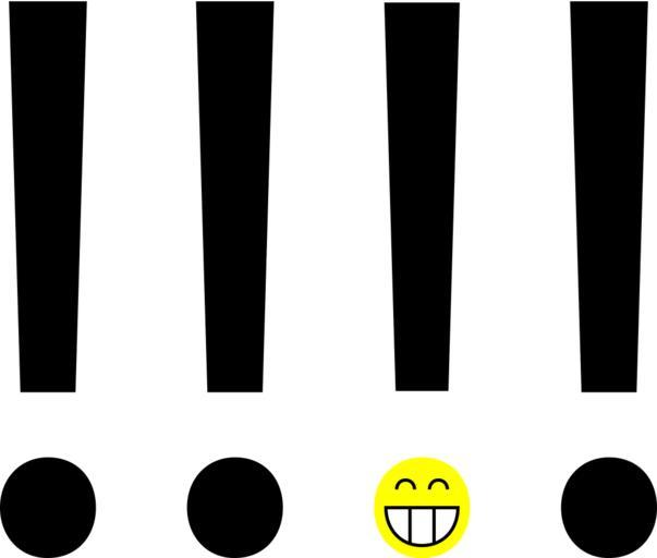 Keywords: Laughing point.svg A laughing smiley in an exclamation point DarkEvil based on en Image laughpoint gif which is free 2006-12-03 DarkEvil SVG smilies SVG Exclamation marks