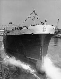 | Keywords: sunderland shipbuilding river wear riverwear j.l. thompson & sons ltd jlthompsonsonsltd north sands sunderland northsandssunderland bulk carrier bulkcarrier g.m. livanos gmlivanos ship launches shiplaunches blackandwhite monochrome black and white Launch of the bulk carrier 'G.M. Livanos' at the North Sands shipyard of J.L. Thompson & Sons, 26 April 1968 (TWAM ref. DS.JLT/4/PH/1/723/2/1). This set celebrates the achievements of the famous Sunderland shipbuilding firm Joseph L. Thompson & Sons. The company’s origins date back to 1846 when the firm was known as Robert Thompson & Sons. Robert Thompson senior died in 1860, leaving his second son Joseph Lowes Thompson in control. In 1870 the shipyard completed its last wooden vessel and was then adapted for iron shipbuilding. By 1880 the firm had expanded its operations over much of North Sands and in 1884 completed the construction of Manor Quay, which served as fitting out and repair facilities. For many years in the late nineteenth century the yard was the most productive in Sunderland and in 1894 had the fourth largest output of any shipyard in the world. The Depression affected the firm severely in the early 1930s and no vessels were launched from 1931 to 1934. However, during those years the company developed a hull design giving greater efficiency and economy in service. During the Second World War the prototype developed by Joseph L. Thompson & Sons proved so popular that it was used by the US Government as the basis of over 2,700 Liberty ships built at American shipyards between 1942 and 1945. After the War the North Sands shipyard went on to build many fine cargo ships, oil tankers and bulk carriers. Sadly the shipyard closed in 1979, although it briefly reopened in 1986 to construct the crane barge ITM Challenger. (Copyright) We're happy for you to share these digital images within the spirit of The Commons. Please cite 'Tyne & Wear Archives & Museums' when reusing. Certain restrictions on high quality reproductions and commercial use of the original physical version apply though; if you're unsure please email archives@twmuseums.org.uk Launch of the bulk carrier 'G.M. Livanos' at the North Sands shipyard of J.L. Thompson & Sons, 26 April 1968 (TWAM ref. DS.JLT/4/PH/1/723/2/1). This set celebrates the achievements of the famous Sunderland shipbuilding firm Joseph L. Thompson & Sons. The company’s origins date back to 1846 when the firm was known as Robert Thompson & Sons. Robert Thompson senior died in 1860, leaving his second son Joseph Lowes Thompson in control. In 1870 the shipyard completed its last wooden vessel and was then adapted for iron shipbuilding. By 1880 the firm had expanded its operations over much of North Sands and in 1884 completed the construction of Manor Quay, which served as fitting out and repair facilities. For many years in the late nineteenth century the yard was the most productive in Sunderland and in 1894 had the fourth largest output of any shipyard in the world. The Depression affected the firm severely in the early 1930s and no vessels were launched from 1931 to 1934. However, during those years the company developed a hull design giving greater efficiency and economy in service. During the Second World War the prototype developed by Joseph L. Thompson & Sons proved so popular that it was used by the US Government as the basis of over 2,700 Liberty ships built at American shipyards between 1942 and 1945. After the War the North Sands shipyard went on to build many fine cargo ships, oil tankers and bulk carriers. Sadly the shipyard closed in 1979, although it briefly reopened in 1986 to construct the crane barge ITM Challenger. (Copyright) We're happy for you to share these digital images within the spirit of The Commons. Please cite 'Tyne & Wear Archives & Museums' when reusing. Certain restrictions on high quality reproductions and commercial use of the original physical version apply though; if you're unsure please email archives@twmuseums.org.uk |