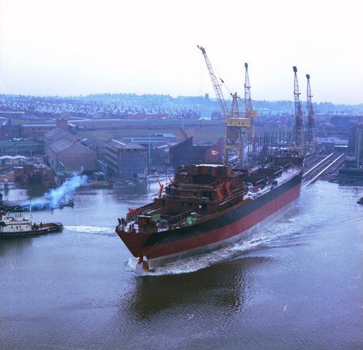 Keywords: 'nicola' nicola industry austin & pickersgill ltd austinpickersgillltd sunderland shipbuilding sd14 southwick shipyard river wear riverwear ship launch shiplaunch outdoor View of the first SD14 'Nicola' as she is launched at the Southwick shipyard of Austin & Pickersgill, Sunderland, 29 December 1967 (TWAM ref. DT.TUR/4/AG3684C). This set celebrates the ‘Nicola’, the first in a long line of standard ships designed by the Sunderland shipyard of Austin & Pickersgill Ltd. The images document her construction from October 1967 through to her completion in February 1968. The shipbuilders commissioned the Newcastle-based firm Turners (Photography) Ltd to take weekly progress shots of the ‘Nicola’ and these images have given us a unique view of her development. She was the first SD14 to be completed (the name stands for ‘Shelter Deck 14,000 tons deadweight’) and was designed as a replacement for the surviving ‘Liberty ships’, built by American yards during the Second World War. Those Liberty ships had played a vital role in the Allied victory but by the 1960s they were fast approaching the end of their working lives. The SD14 developed by Austin & Pickersgill met the demand for economic and reliable cargo ships. The simplicity of the design meant that it could be marketed by the shipbuilders at a very competitive price. It’s success is reflected by the fact that over the course of 20 years 211 ships were built to the SD14 design by Austin Pickersgill and its licensees. Sunderland can be very proud of its remarkable shipbuilding and engineering history and the SD14 is one the City’s finest achievements. (Copyright) We're happy for you to share these digital images within the spirit of The Commons. Please cite 'Tyne & Wear Archives & Museums' when reusing. Certain restrictions on high quality reproductions and commercial use of the original physical version apply though; if you're unsure please email archives@twmuseums.org.uk View of the first SD14 'Nicola' as she is launched at the Southwick shipyard of Austin & Pickersgill, Sunderland, 29 December 1967 (TWAM ref. DT.TUR/4/AG3684C). This set celebrates the ‘Nicola’, the first in a long line of standard ships designed by the Sunderland shipyard of Austin & Pickersgill Ltd. The images document her construction from October 1967 through to her completion in February 1968. The shipbuilders commissioned the Newcastle-based firm Turners (Photography) Ltd to take weekly progress shots of the ‘Nicola’ and these images have given us a unique view of her development. She was the first SD14 to be completed (the name stands for ‘Shelter Deck 14,000 tons deadweight’) and was designed as a replacement for the surviving ‘Liberty ships’, built by American yards during the Second World War. Those Liberty ships had played a vital role in the Allied victory but by the 1960s they were fast approaching the end of their working lives. The SD14 developed by Austin & Pickersgill met the demand for economic and reliable cargo ships. The simplicity of the design meant that it could be marketed by the shipbuilders at a very competitive price. It’s success is reflected by the fact that over the course of 20 years 211 ships were built to the SD14 design by Austin Pickersgill and its licensees. Sunderland can be very proud of its remarkable shipbuilding and engineering history and the SD14 is one the City’s finest achievements. (Copyright) We're happy for you to share these digital images within the spirit of The Commons. Please cite 'Tyne & Wear Archives & Museums' when reusing. Certain restrictions on high quality reproductions and commercial use of the original physical version apply though; if you're unsure please email archives@twmuseums.org.uk |