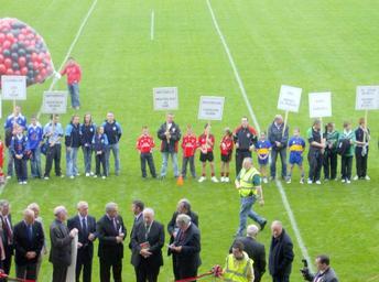 Keywords: Launch Pairc Esler.jpg en Ceremony to mark the reopening of Pairc Esler GAA pitch in Newry Ireland on 8 10 2007 Own Seana Talbot 8 10 2007 Gaelic football in County Down Newry Sports venues in Northern Ireland October 2007 in Northern Ireland |