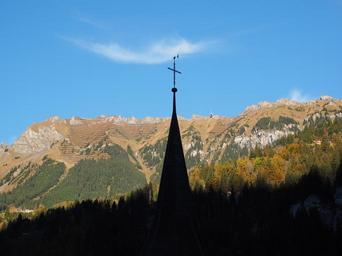 Keywords: lauterbrunnen switzerland church steeple spire cableway wengen-male cable car wengen-male male