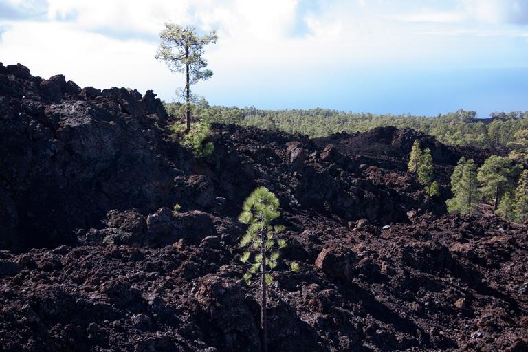 Keywords: lava lava rock lava fields boulders lunar landscape tenerife teide national park lava flow karg cold trist basalt dark black brown pine canary kiefer pinus canariensis contrast death live