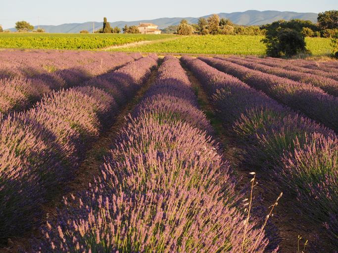 Keywords: lavender field lavender evening sun lavender flowers violet lavender cultivation ornamental plant crop true lavender france provence lavandula