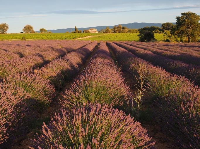Keywords: lavender field lavender evening sun lavender flowers violet lavender cultivation ornamental plant crop true lavender france provence lavandula