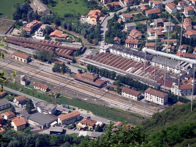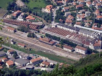 Keywords: Laveno Stazione FS 1.JPG fr Laveno-Mombello VA Stazione delle Ferrovie dello Stato FS vista dal Poggio Sant'Elsa 2012-07-09 11 57 08 own Torsade de Pointes cc-zero Uploaded with UploadWizard Laveno-Mombello train station