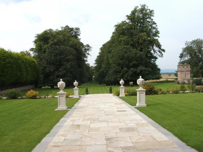 Keywords: lawn pathway pillars trees grass rowton castle england shropshire