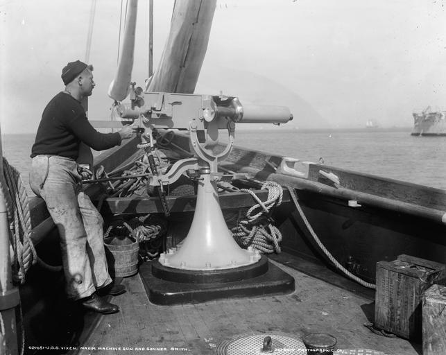 | Keywords: blackandwhite monochrome black and white LC-DIG-DET-4a14810: US Navy yacht, USS Vixen (PY 4), Maxim machine gun and Gunner Smith. Published by Detroit Publishing Company, probably between 1890 and 1901. Vixen served during the Spanish-American War and World War I. (5/29/2015). LC-DIG-DET-4a14810: US Navy yacht, USS Vixen (PY 4), Maxim machine gun and Gunner Smith. Published by Detroit Publishing Company, probably between 1890 and 1901. Vixen served during the Spanish-American War and World War I. (5/29/2015). |