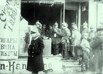 | Keywords: monochrome LC-DIG-GGBAIN-19249: German Activities, World War I. Germans eating at a cigar shop in Marrggrabowa (now Olecko, Poland) during World War I. George Grantham Bain Collection. From Lot-11170 (2015/10/23). LC-DIG-GGBAIN-19249: German Activities, World War I. Germans eating at a cigar shop in Marrggrabowa (now Olecko, Poland) during World War I. George Grantham Bain Collection. From Lot-11170 (2015/10/23). | ||||