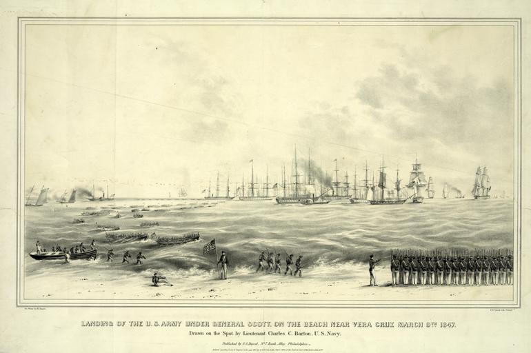 Keywords: outdoor photo border monochrome LC-DIG-PGA-03678: Mexican-American War. Landing of the U.S. Army under General Winfred Scott, assisted by the U.S. Navy, on the beach near Veracruz, Mexico, March 9th, 1847. Courtesy of the Library of Congress. LC-DIG-PGA-03678: Mexican-American War. Landing of the U.S. Army under General Winfred Scott, assisted by the U.S. Navy, on the beach near Veracruz, Mexico, March 9th, 1847. Courtesy of the Library of Congress. |