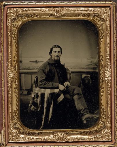 | Keywords: people picture frame photo border surreal LC-USZC4-12359: Unidentified US Navy sailor seated in front of a painted backdrop showing a nautical scene, right arm resting on table draped with an American flag. Half-plate tintype, hand-colored, done during the Civil War. Courtesy of the Library of Congress. LC-USZC4-12359: Unidentified US Navy sailor seated in front of a painted backdrop showing a nautical scene, right arm resting on table draped with an American flag. Half-plate tintype, hand-colored, done during the Civil War. Courtesy of the Library of Congress. |