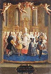 Keywords: Le Mariage de Louis XV et de Marie Lecszinka dans la chapelle de Fontainebleau le 5 septembre 1725, Anon.jpg Artwork Creator École française Le Mariage de Louis XV et de Marie Lecszinka dans la chapelle de Fontainebleau le 5 septembre 1725 1725 Oil on canvas cm 51 36 Château de Fontainebleau http //1 bp blogspot com/_wwe_WiNJu8s/TFr4fEIgB9I/AAAAAAAACJw/1DAp6swhQIs/s1600/Anonyme +Le+Mariage+de+Louis+XV+et+de+Marie+Lecszinka+dans+la+chapelle+de+Fontainebleau+le+5+septembre+1725 jpg 1 bp blogspot com http //www photo rmn fr/cf/htm/CDocZ aspx E 2C6NU096W6W6 DT ALB Pass Total 38 Pic 13 other versions PD-old-100 DEFAULTSORT 1725 18th-century unidentified painters from France Paintings in the Musée national du Château de Fontainebleau 1725 paintings 18th-century history paintings 18th-century oil on canvas paintings Paintings of humans with putti Royal marriages Wedding ceremonies in paintings Wedding of Louis XV of France and Maria Leszczyńska |