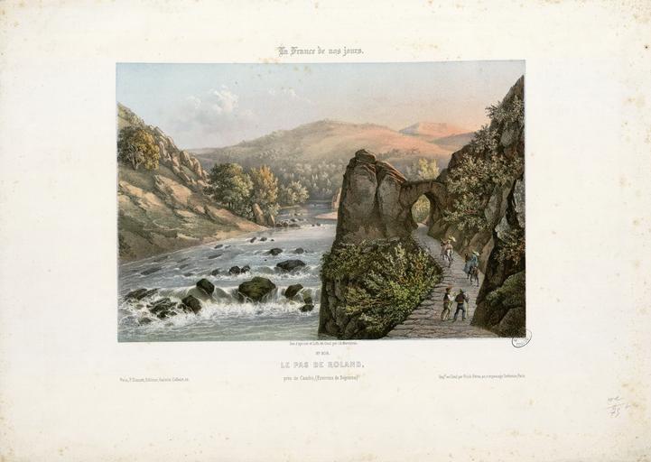 | Keywords: Le Pas de Roland, près de Cambo (Environs de Bayonne) - Fonds Ancely - B315556101 A MERCEREAU 7 077.jpg Impression en 3 coul par Frick frères à Paris Fait partie d'un ensemble de recueils de lithographies de Mercereau composés de lithographies provenant de La France de nos jours vaste suite publiée par livraisons de 1853 à 1876 et comprenant 475 planches en deux tirages l'un à deux teintes noir et bistre l'autre en couleurs Les libraires ont réuni ces planches en albums de composition variable quant au nombre de planches et aux dessinateurs Asselineau Mercereau Maurice Deroy etc Un titre Les Pyrénées par Ch Mercereau; Bagnères-de-Luchon par Ch Mercereau était frappé sur le plat supérieur de la reliure de l'album ainsi que le nom du Libraire pour lequel il était réalisé La plupart des recueils de ces planches pyrénéennes portent le nom de Sajous libraire à Bagnères-de-Luchon Pl 1 à 18 numérotées de 370 à 386 Pl 374 pl 5 et 6 en double -- Pl 19 20 et 21 numérotées respectivement 407 415 et 418 Ces trois pl ont été dessinées et lithographiées par Asselineau -- Pl 22 23 et 24 numérotées 438 439 et 440 -- Pl 22 lith par Aubrun -- Pl 25 numérotée 441 -- Pl 26 à 40 numérotées de 327 à 341 -- Pl 41 à 46 numérotées de 363 à 368 -- Pl 47 numérotée 369 -- Pl 48 num 292 -- Pl 49 et 50 num 264 et 265 -- Pl 51 et 52 num 268 et 269 -- Pl 53 à 55 num de 293 à 295 -- Pl 56 num 300 -- Pl 57 à 59 num de 307 à 309 -- Pl 60 à 70 num de 316 à 326 -- Pl 71 num 63 dessin et lith d'Asselineau imprimerie Destouches -- Pl 72 et 73 num 87 et 88 dessin et lith d'Asselineau imprimerie Destouches -- Pl 74 num 124 signée Lebreton éditée chez Lalonde à Paris et imprimée chez Becquet frères à Paris -- Pl 75 num 161 dessin et litho d'Asselineau imprimerie Destouches --Pl 76 à 78 num de 207 à 209 -- Pl 79 à 81 num de 211 à 213 -- Pl 82 num 220 dessin et lith de Maurice imprimerie Destouches -- Pl 83 à 86 num de 226 à 229 -- Pl 87 et 88 num 234 et 235 -- Pl 89 à 91 num de 273 à 275 -- Pl 92 et 93 num 290 et 291 Pièces jointes 6 pl sépia dont certaines sont des doubles du recueil de Mercereau Les cinq premières planches sont numérotées respectivement 318 321 324 331 386 La dernière planche n'est pas extraite de La France de nos jours mais de L'Espagne pittoresque et monumentale Ces six planches sont signées Mercereau éditées chez Sinnet et imprimées chez Frick frères Ancely René 1876 - 1966 Possesseur fre public domain domaine public B315556101_A_MERCEREAU_7_077 jpg image/jpeg 1 f de pl lithogr ; 32 cm oblong Sinnet F Éditeur Frick frères Imprimeur http //numerique bibliotheque toulouse fr/collect/general/index/assoc//ark /74899/B315556101_A_MERCEREAU_7_077 dir/B315556101_A_MERCEREAU_7_077 jpg Bibliothèque municipale de Toulouse A-MERCEREAU 7-77 Creator Charles Mercereau http //catalogues toulouse fr/web2/tramp2 exe/do_keyword_search/log_in setting_key BMT1 servers 1home query p001701 St Jean-de-Luz intérieur de l'Eglise St Jean-de-Luz le Château de l'Infante Biarritz Vue générale prise du Phare Château de Mauvesin près Bagnères-de-Bigorre Hautes Pyrénées Bagnères de Bigorre Hautes Pyrénées - Intérieur de l'Eglise des Carmes en couleurs Bagnères de Bigorre Hautes Pyrénées - Intérieur de l'Eglise des Carmes Bagnères-de-Bigorre - Eglise et couvent des Carmes Bagnères-de-Bigorre Hautes-Pyrénées - Tour des Jacobins Cascade et Pont de Magenta Vallée de l'Esponne Hautes Pyrénées Cascade de Trémes-Aïgues Vallée de Grip Hautes Pyrénées St Sauveur Hautes Pyrénées - Le Pont Napoléon Bayonne - Eglise St André Arreau et la Vallée d'Aure Hautes Pyrénées - Vue prise au dessus de la route du Col d'Aspin Auch - Vue prise sur les bords du Gers Auch - Vue de la Cathédrale Auch - Intérieur de la Cathédrale Bagnères-de-Bigorre - Vue Générale prise de la Fontaine ferrugineuse Eaux-Bonnes Basses-Pyrénées - L'établissement Thermal et la Chapelle Nantes - Vue de l'Eglise Ste Croix Le Croisic - Plage des Baigneurs et Etablissement de Bains Le Folgoët - Vue de l'Eglise Brèche de Roland prise de Gèdres Hautes Pyrénées Eglise des Templiers à Luz Chapelle du couvent de Pouëlahun i e Pouey Lahun - Vallée d'Azun Hautes Pyrénées Le Pont de Scia - Route de Luz à Gavarnie Hautes-Pyrénées Vue de l'établissement de la Raillière près Cauterets Hautes-Pyrénées Vue générale de Cauterets prise du Mamelon Vert Hautes-Pyrénées Vue du Fort de Lourdes Hautes-Pyrénées Vue d'Argelès-de-Bigorre Hautes-Pyrénées Vue de St Sauveur Hautes-Pyrénées Le Pas de l'Echelle Route de Gavarnie Hautes-Pyrénées Fond de la Vallée d'Argelès prise de la terrasse de St Savin Hautes-Pyrénées Place Grammont à Pau Basses-Pyrénées Vue générale des Eaux-Bonnes Basses-Pyrénées Barèges et la Vallée du Bastan Hautes-Pyrénées Chute supérieure du Pont d'Espagne Hautes-Pyrénées La grotte miraculeuse à Lourdes Hautes-Pyrénées Eglise de Bétharram et Pont de Lestelle Basses Pyrénées Cascade du Cerizet Près Cauterets Hautes-Pyrénées Pic du Midi d'Ossau 2885m Basses Pyrénées - Vue prise du 3e plateau de Bious-Artigues Toulouse - Cloître du Musée et Clocher des Augustins Pau - Vue prise de la terrasse du Château Pau - Vue du Château prise du Parc Toulouse - Cloître du Musée Galerie du Moyen-Age Toulouse - La maison de pierre fragment de la façade Toulouse - Intérieur de St Sernin St Jean-de-Luz Fort du Socoa Toulouse - Vue du Capitole Bordeaux Vue de la Porte du Caillau i e Cailhau Bordeaux Porte de la grosse Cloche Bordeaux Vue des Quinconces Bordeaux - Vue de la Tour et de l'Eglise de St Michel Toulouse - Vue du Pont de pierre prise du Quai de Brienne Toulouse - Abside de l'Eglise de St Sernin de l'an 1097 Toulouse - Choeur de la Cathédrale St Etienne Rouen - Hôtel de Bourgtheroulde Biarritz - Vue des Bains Napoléon et du Casino Biarritz - Vue des Bains du Port Vieux Biarritz - Vue de l'Entrée de l