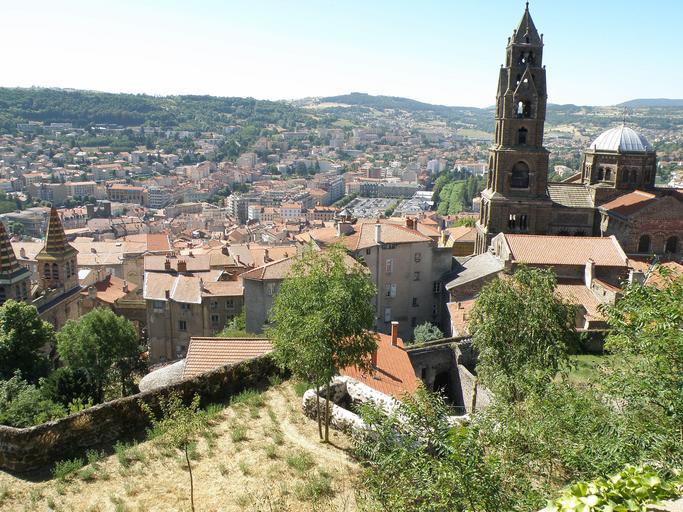 | Keywords: Le Puy-en-Velay Vue générale1.JPG Le Puy-en-Velay préf de la Haute-Loire France <br/> Vue générale depuis le flanc sud-ouest du rocher Corneille ; coup d'oeil vers le sud On aperçoit <br/> - à droite le clocher et la tour de croisée octogonale de la cathédrale Notre-Dame ;<br/> - à gauche du clocher frondaisons du jardin Vinay bordé au sud par le musée Crozatier non visible sur ce cliché ;<br/> - à gauche du jardin Vinay la vaste place Michelet ;<br/> - tout à fait à gauche et plus près de nous les deux clochers au comble bigarré appartenant à la chapelle du Séminaire ;<br/> - un peu à droite de cette dernière mais plus éloignée la silhouette brun sombre de léglise Saint-Pierre-des-Carmes avec ses deux tours octogonales sans flèche séparées par le pignon triangulaire de la façade occidentale Own Torsade de Pointes 2009-08 Vues générales sur Le Puy-en-Velay Clocher de la cathédrale Notre-Dame du Puy-en-Velay |