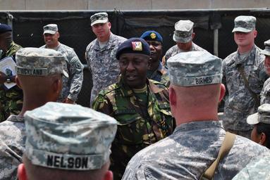 Keywords: Leadership in action, US, Kenyan senior enlisted exchange best practices 120327-N-MM945-312.jpg en Kenya army Weapons Training Sgt Major David Karisa Barisa center addresses Task Force Raptor soldiers U S Army 3rd Squadron 124th Cavalry Regiment Texas Army National Guard after completing a personnel inspection here March 27 Matwang'a along with three other Kenyan senior enlisted leaders visited Combined Joint Task Force - Horn of Africa senior enlisted members to share ideas about enlisted leadership roles in executing the mission 2012-03-27 Senior Chief Petty Officer Maria Escamilla https //www dvidshub net/image/552669 120327-N-MM945-312 2012-04-02 03 34 CAMP LEMONNIER DJ PD-USGov-Military-Navy Texas Army National Guard Combined Joint Task Force - Horn of Africa Camp Lemonnier Images from DoD uploaded by Fæ 124th Cavalry Regiment United States |