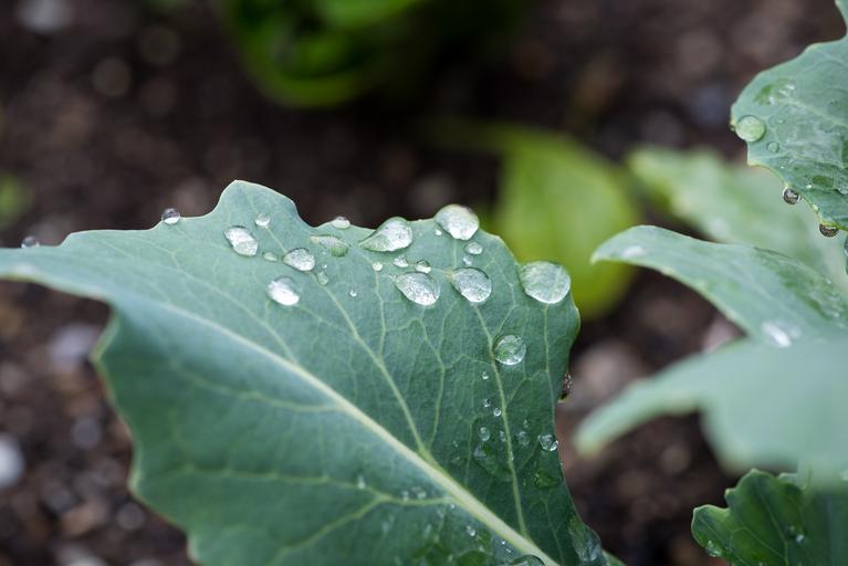 Keywords: leaf green green leaf kohlrabi leaf drip drop of water raindrop nature garden vegetable garden plant close