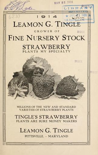 Keywords: Leamon G. Tingle grower of fine nursery stock strawberry plants my specialty (16958825398).jpg MAY 21 W <br> –ˇ iC <br> lOE <br> 3 1 I C <br> K i a <br> 1 © 1 4 ˘JMiJi20 <br> Leamon G Tingle <br> GROWER OF <br> INDEX <br> Fine Nursery Stock <br> strawberry <br> PLANTS MY SPECIALTY <br> INDEX <br> INDEX <br> MILLIONS OF THE NEW AND STANDARD <br> VARIETIES OF STRAWBERRY PLANTS <br> TINGLE S STRAWBERRY <br> PLANTS ARE SURE MONEY MAKERS <br> Leamon G Tingle <br> PITTSVILLE - MARYLAND <br> DC <br> 30E <br> – 'III illr <br> 20L 42514356 134914 67362 Title Page http //www biodiversitylibrary org/page/42514356 1914 10 5962/bhl title 67362 Henry G Gilbert Nursery and Seed Trade Catalog Collection ; Tingle Nursery Company Biodiversity Heritage Library Leamon G Tingle grower of fine nursery stock strawberry plants my specialty Catalogs Nurseries Horticulture Strawberries U S Department of Agriculture National Agricultural Library bhl page 42514356 dc identifier http //biodiversitylibrary org/page/42514356 bhlGardenStories nurseries horticulture u s department of agriculture national agricultural library bhlgardenstories Information field Flickr posted date ISOdate 2015-04-14 CC-BY-2 0 BioDivLibrary https //flickr com/photos/61021753 N02/16958825398 2015-08-23 19 56 52 cc-by-2 0 PD-old-70-1923 Leamon G Tingle grower of fine nursery stock strawberry plants my specialty Photos uploaded from Flickr by Fæ using a script |