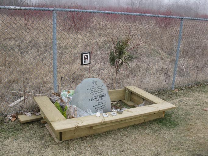 | Keywords: Leanne Freeman monument on Unwin Avenue, 2012-03-17 -b.jpg Leanne Freeman was a 23 year old woman of no fixed address whose body was found mortally wounded at 1 am 2011-11-29 on isolated Unwin Avenue She was declared DOA at the hospital where medical staff determined she died not in a traffic accident but by a gunshot wound to the head Police believed she was shot elsewhere On 2011-12-10 her clothes and belongings were found in a dumpster in Scarboro Police captured two suspects on 2011-12-16 and 2011-12-17 The Toronto Star started a trust fund after many of its readers were moved by her savage death and her families inability to pay to bury her On January 8 2012 a monument to Freeman was erected at the site her body was found on Unwin Avenue own 2012-03-17 Geo Swan <span class signature-talk >talk</span> Leanne Freeman monument |