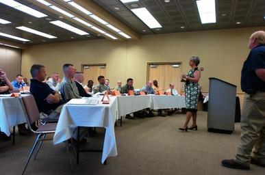 Keywords: Learning in Austin, Texas DVIDS101754.jpg en Jane Burazer and George Calhoun directors of the waste and wastewater management systems talk to Soldiers from the 2nd Brigade Combat Team 1st Cavalry Division about what it takes to keep the fresh water flowing during a city manager's course at the Palmer Events Center in Austin Texas June 30 2008-06-30 Spc Alexis Harrison https //www dvidshub net/image/101754 101754 2008-07-09 14 09 AUSTIN TX US PD-USGov 1st Cavalry Division United States Images from DoD uploaded by Fæ