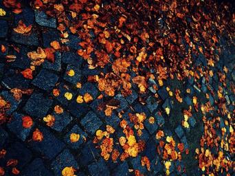 Keywords: leaves autumn cobbles paving path ground