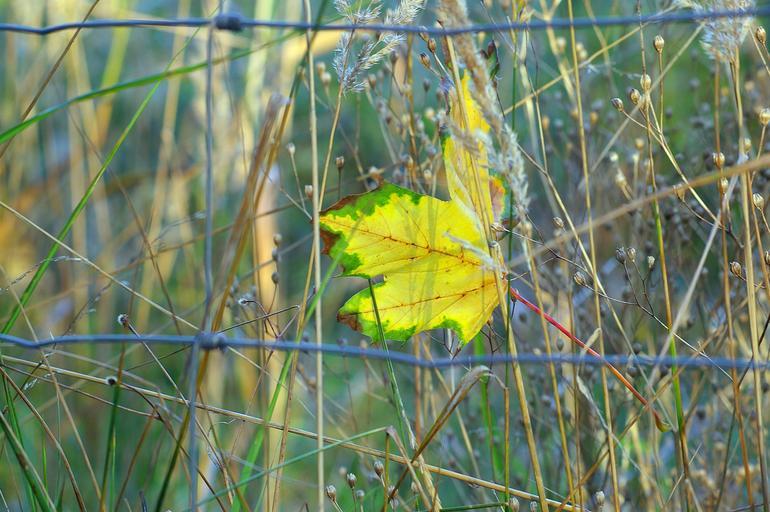 Keywords: leaves foliage leaf autumn leaf fall foliage fall color individually dry fallen nature grass autumn colours meadow landscape golden autumn yellow time of year mood color october golden emerge maple fence fenced colors of autumn autumn mood